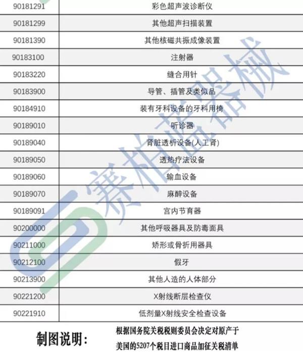 從國務(wù)院發(fā)布的公告來看,公告中提到的600億美元商品清單時發(fā)現(xiàn),涉及醫(yī)療器械的產(chǎn)品不僅有大型醫(yī)用設(shè)備儀器,同時也包括耗材和試劑。