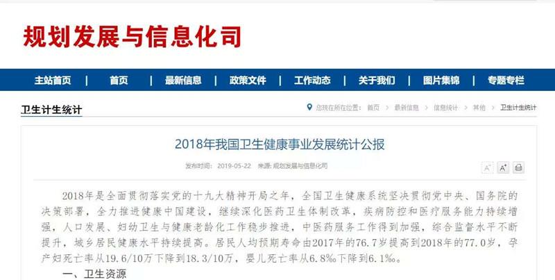 5月22日,國家衛(wèi)生健康委發(fā)布《2018年我國衛(wèi)生健康事業(yè)發(fā)展統(tǒng)計公報》(下稱《公報》)。數(shù)據(jù)顯示,2018年末,全國醫(yī)療衛(wèi)生機構(gòu)總數(shù)達(dá)997434個,其中醫(yī)院33009個。