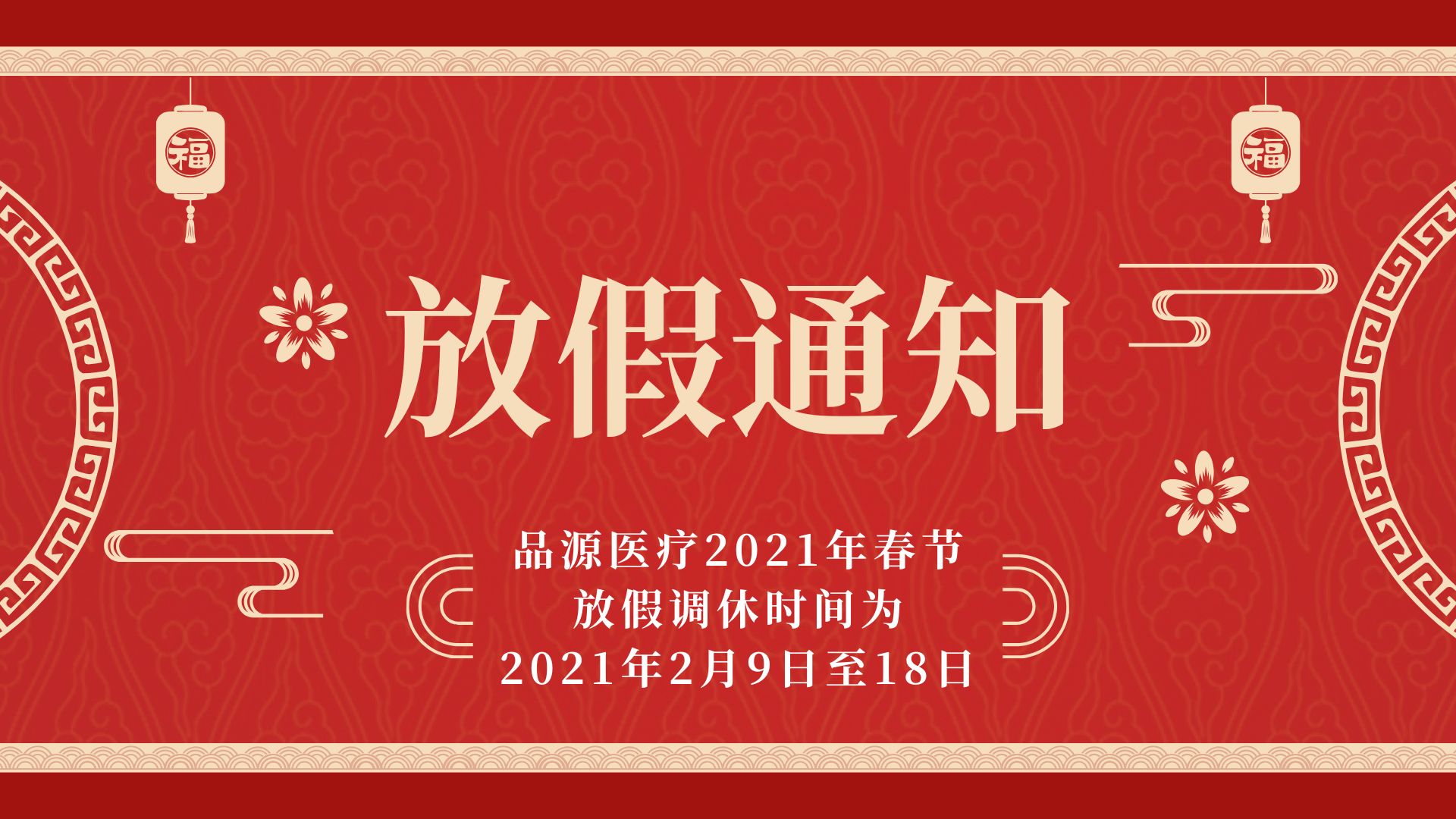 品源醫(yī)療2021年春節(jié)放假時間:2月9日-2月18日,2月19日(大年初八)上班,預(yù)祝各位合作伙伴新年快樂,牛年大吉!