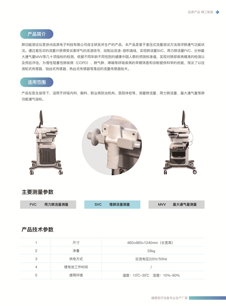 肺功能儀適用范圍:產(chǎn)品在醫(yī)生指導(dǎo)下,適用于呼吸內(nèi)科、胸科、職業(yè)病防治機(jī)構(gòu)、醫(yī)院體檢等,測(cè)量肺活量、用力肺活量、最大通氣量等肺功能通氣指標(biāo)。